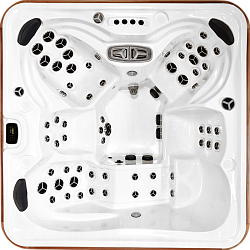 Для изделия таких размеров, в гидромассажном СПА-бассейне Ловиа Спа ZR7036 установлено довольно много форсунок - 47 штуки. Через них вода и воздух направленно воздействуют на тело, производя желаемый гидромассажный эффект. Каждый пользователь может индивидуально регулировать силу потока.